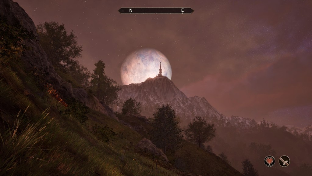 In the distance, I spotted the blue glow of an Ayleid ruin, the flicker of a campfire, and bandits wandering their outpost.